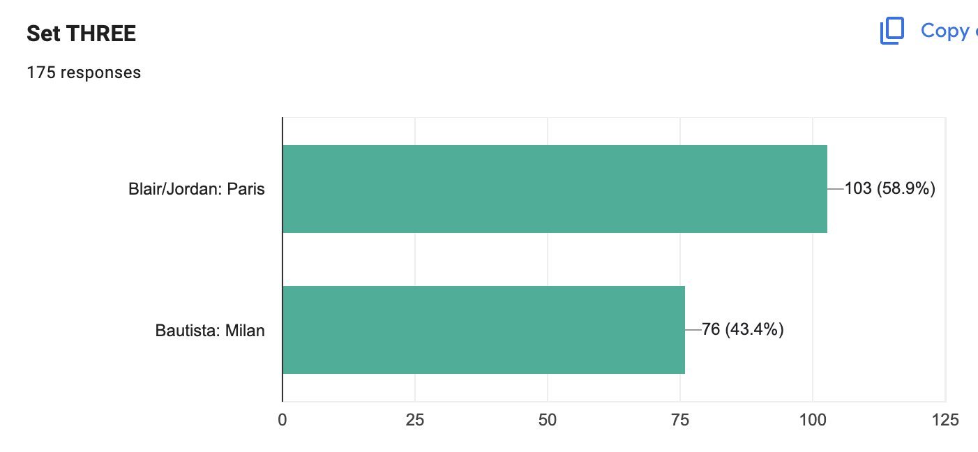 Set THREE - Blair & Jordan: Paris vs. Bautista: Milan