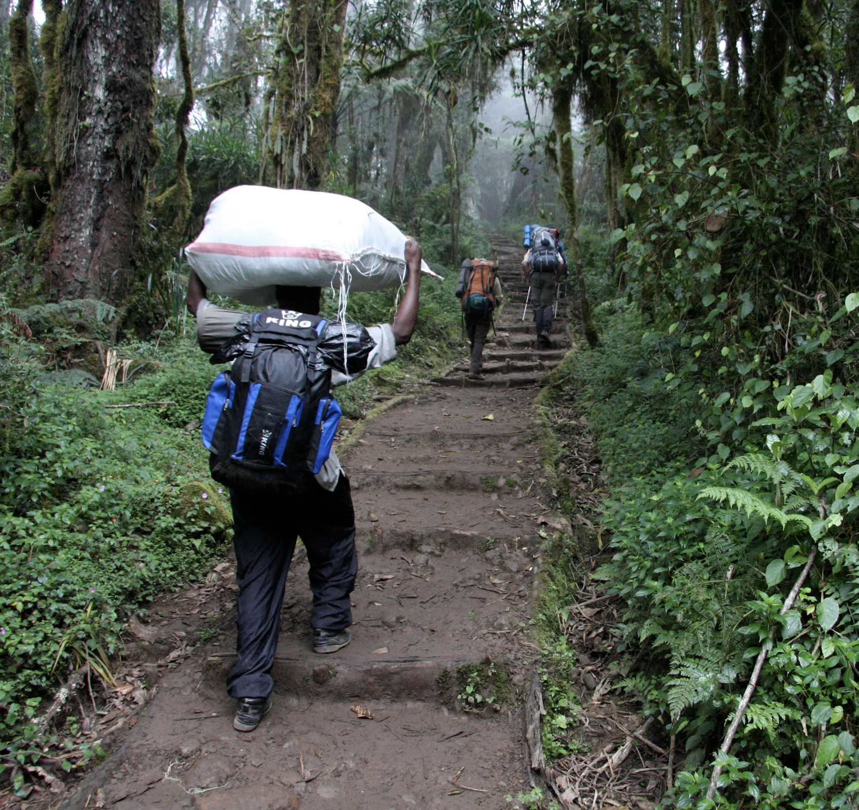 Dense rainforest covers the second zone from 6,200 to 9,200 feet. It includes ferns, jungle plants, high humidity, and huge trees. As climbers traverse this zone, they will be walking under a canopy of huge trees that are competing for sunlight to survive.